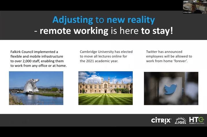 In our recently held webinar entitled ‘Future of Workspace: Maximising the potential of homeworking’, we discussed with our solutions partners IGEL and Citrix, the impact of COVID on organisations and how together we can help them to continue to thrive from a technology perspective.