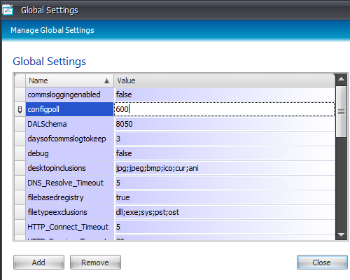 On to the case in point. There is a setting in the Global Settings section of Personalization Server called configpoll. This correlates to the interval (measured in seconds) at which each managed endpoint connects to the Personalization Server and downloads a configuration. For versions of AppSense Environment Manager from version 8.0 to 8.2, the default was set to 600. So every ten minutes, each managed client would be connecting to and downloading a configuration from the Personalization Server.