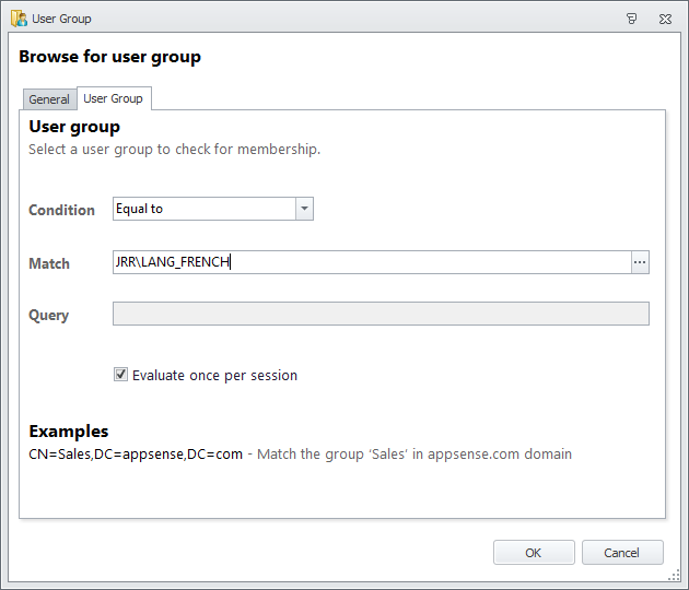 Next you will need to fill in the details of the required AD security group, which in this case is our French language group