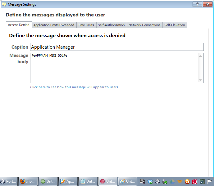 Obviously, if we have seven or eight different AD groups with environment variables mapped to the various translations, you need to keep the environment variable names the same across each group, otherwise you will soon get lost 🙂 Thinking about this, it’s probably better to call the environment variables names like %APPMAN_MSG_AccessDenied% and %APPMAN_MSG_AppLimitsExceeded% rather than the numerical format I chose, which would make things easier to work through for your support teams.