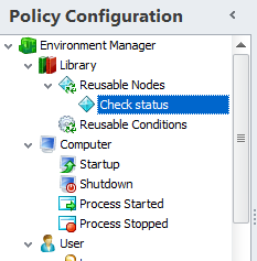 We’d need to use some If Else Group stuff for this, so at Computer Startup or User Logon (whichever way you prefer to do it), you can run the initial instance of this check for status. We are going to create it as a Reusable Node because we may need to reference this a couple of times