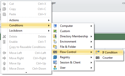 We then add the If Condition by choosing Condition | Flow Control | If Condition