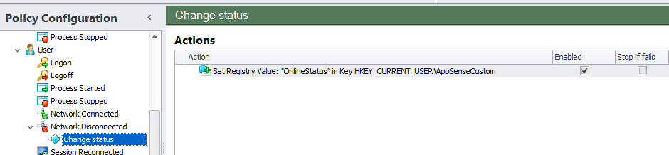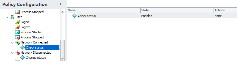 So where else do we need to use this besides either at startup or initial logon? Well, users (especially laptop users) are quite capable of disconnecting and reconnecting from networks at will. AppSense Environment Manager provides a couple of handy triggers called Network Disconnected and Network Connected that we can use to help here. Obviously, for the Network Disconnected trigger, we simply need to change the status to Offline, so we will simply copy and paste the Action from the Else part of the If Else Group into the Network Disconnected section