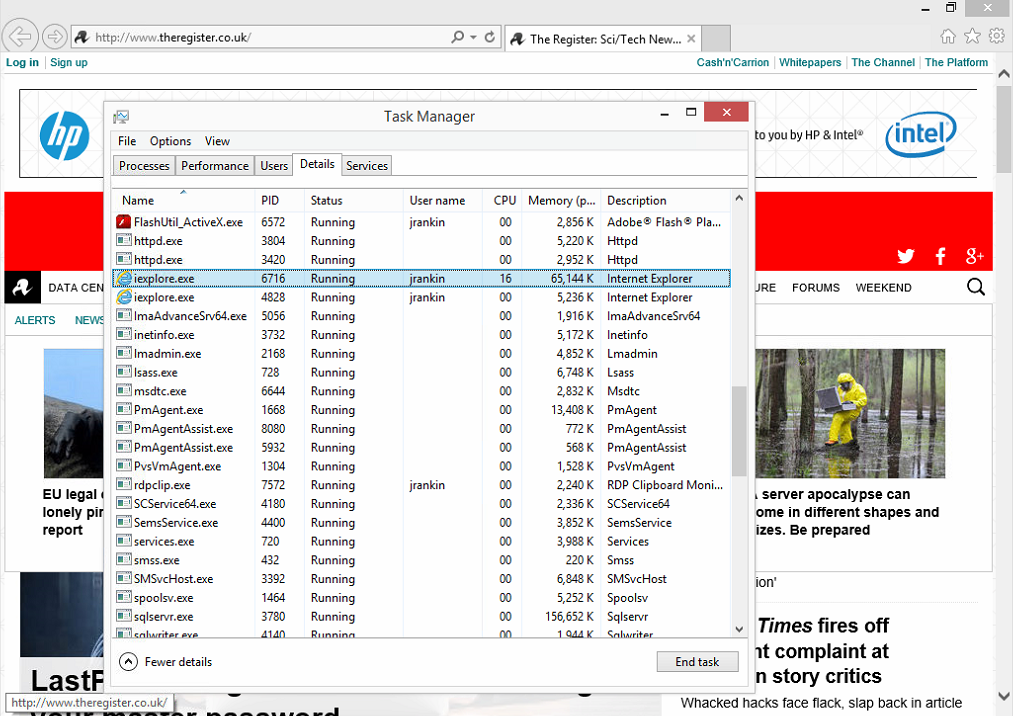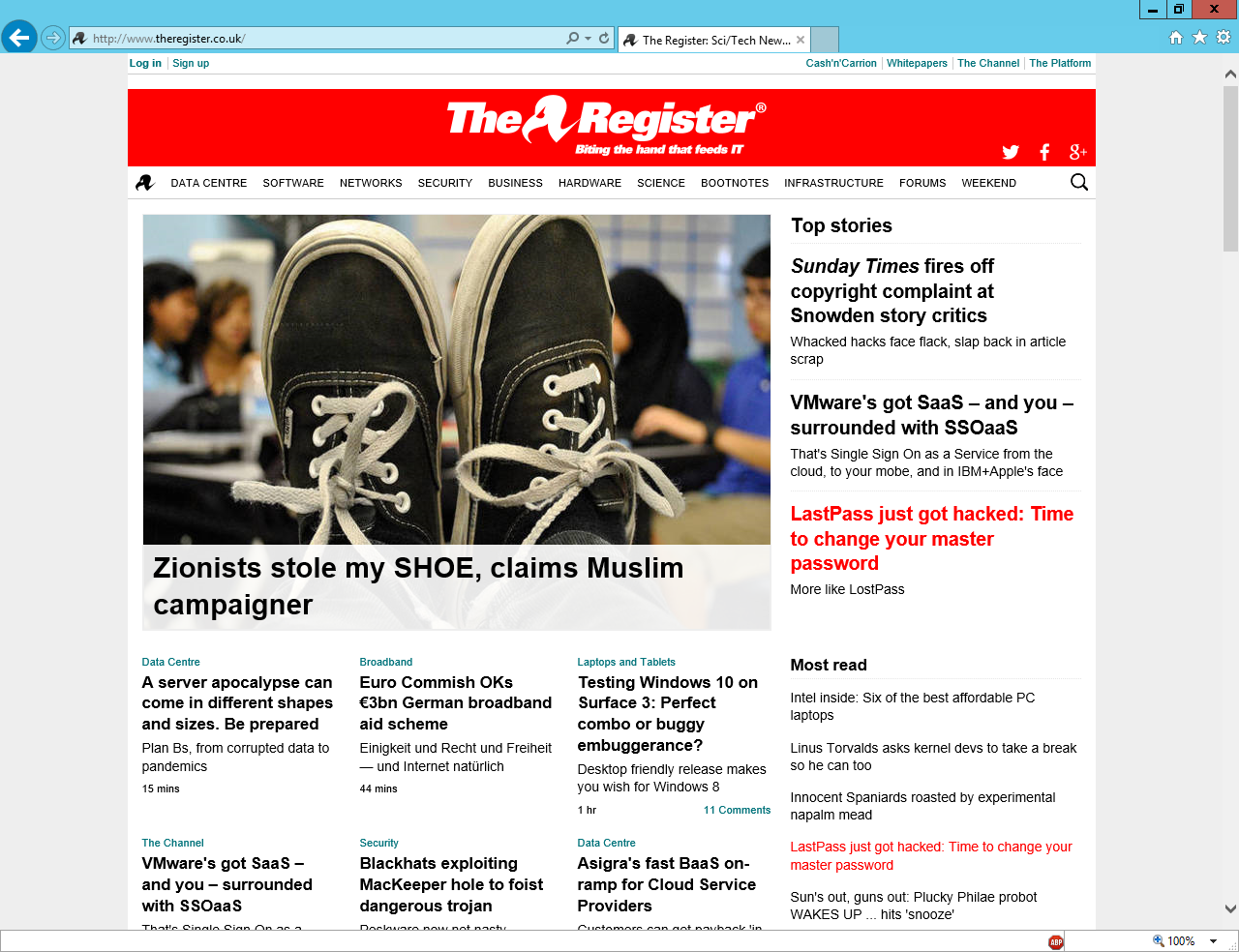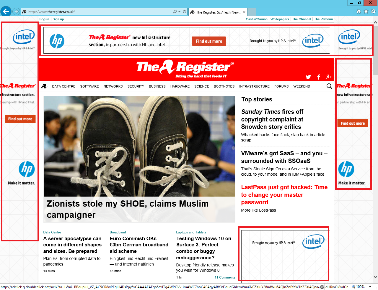 The website I chose to test on was my old faithful I.T. newsstand The Register, which I have noticed puts out a lot of banner ads, often involving animation.