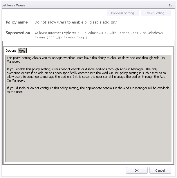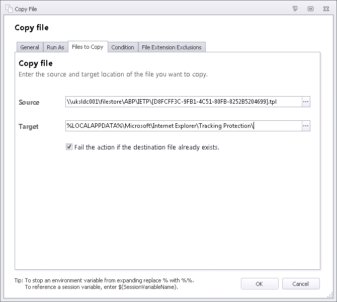 If you’re not using something like AppSense EM, you will have to face up to the fact that savvy users may be able to get in and change the Tracking Protection settings, but as long as you use something like Group Policy Preferences (preferably in its aggressive “Replace” mode) to overwrite the files and Registry values at every refresh interval, the chances of this being a big issue should be somewhat minimized.