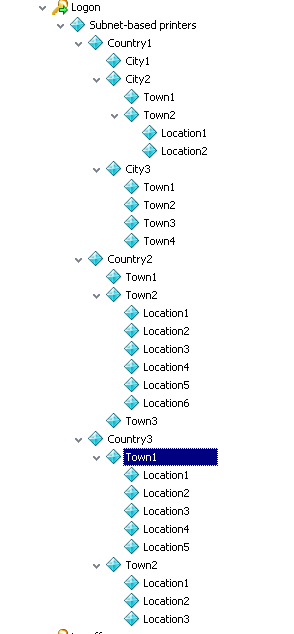 | An example of a complicated printer mapping node that performs a lot of subnet Condition checking |