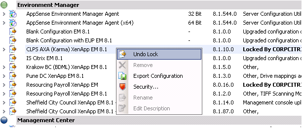 Enter version 8, which introduced the “open and lock” feature to save us from this pit of despair. However, with it came another PITA, the question regarding what to do when someone opens a configuration in “locked” mode, and then leaves it open on their workstation whilst taking a week’s holiday? Fortunately, as this is quite a common occurrence – well, probably apart from the the week’s holiday bit – AppSense have given us a way to remove these locks.