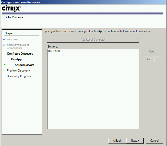 Let’s start with the first one, XenApp 6.5 AppCenter. Seasoned Citrix admins will know that the first thing we have to do (on the old IMA products) is configure the Discovery for the farm