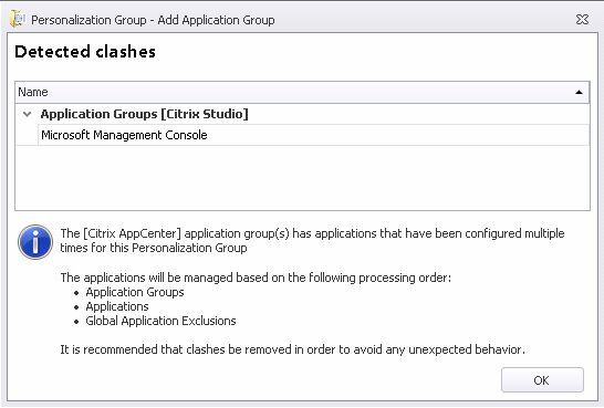 - {CSIDL_APPDATA}\CitrixMMC added to Folder Includes for Application Group