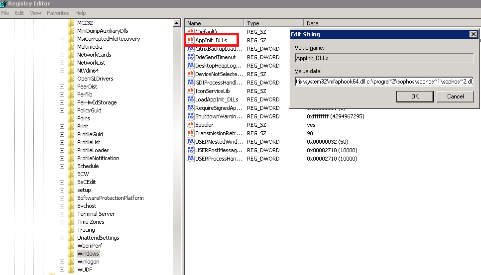 Also, be very careful when editing the AppInit_DLLs key – we managed to inadvertently fat-finger it and delete the Citrix hook entry in our testing. Which was not amusing for the testers, who lost the ability to run apps in seamless windows!