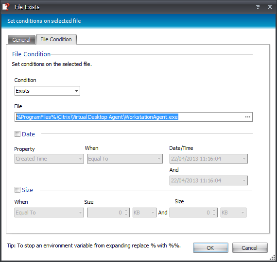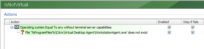 and the second runs a check for your VDI poison of choice. In this case it was XenDesktop, so we can simply reuse the “check for XenDesktop” Condition we’ve mentioned a couple of times in earlier blog posts.