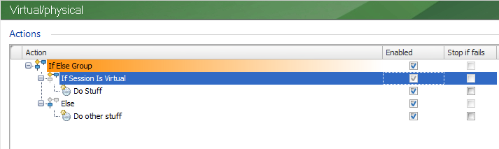 From here all of your settings for physical sessions would be set as child Nodes of this node. You could also get away from having to have two separate nodes by utilizing a single node with an If Else Group as below