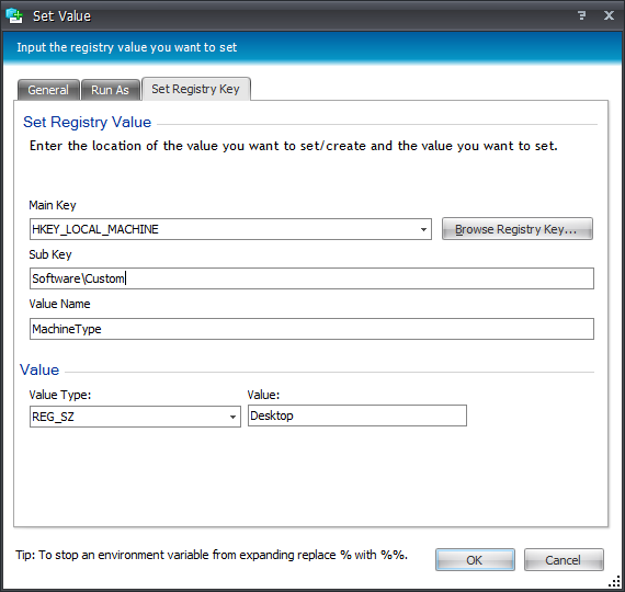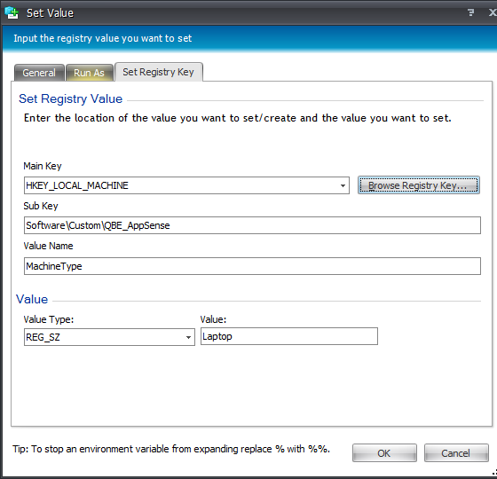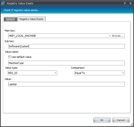 So now the Action underneath this clause will write the Registry value to indicate a laptop